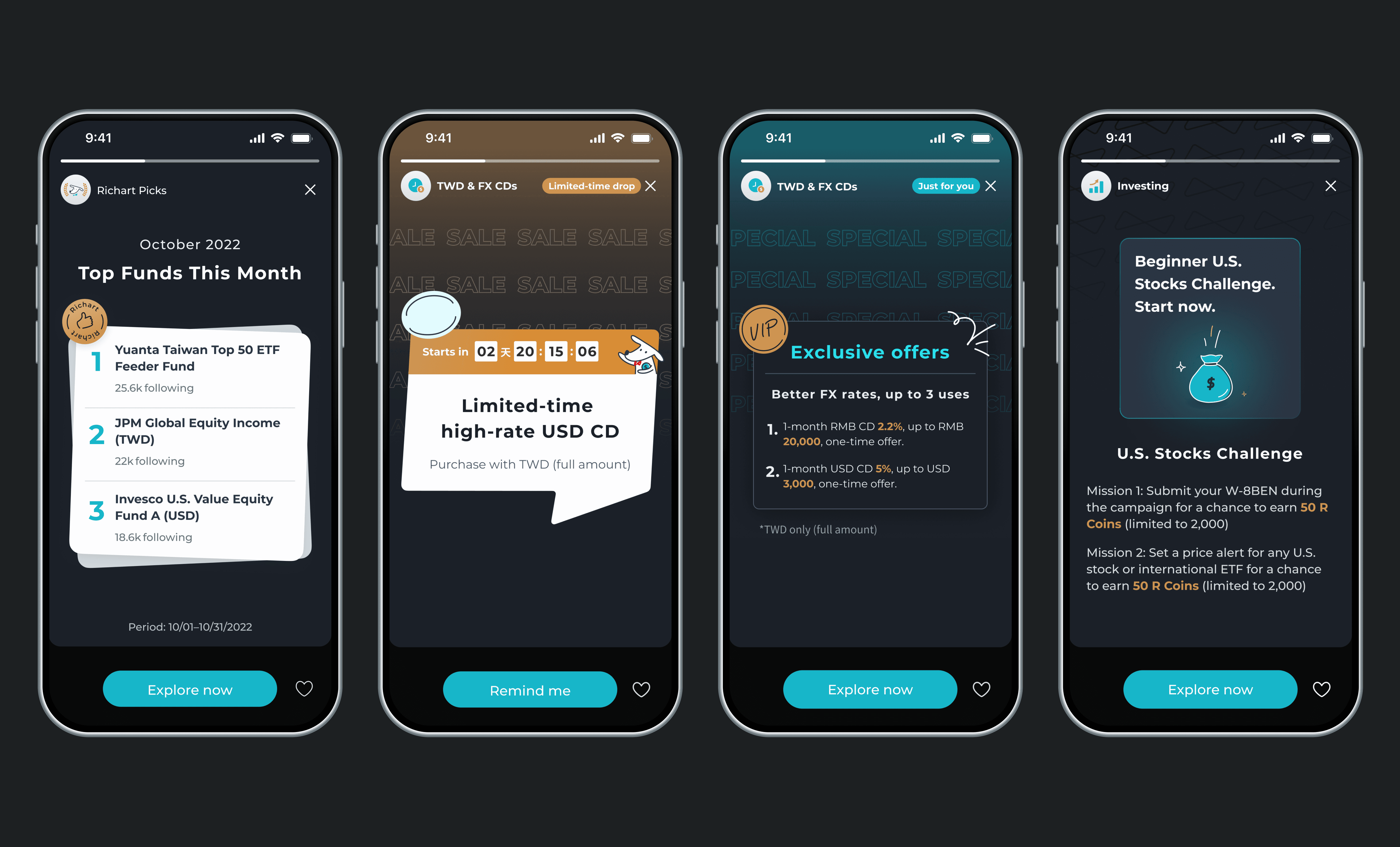 I brainstormed with a UX designer to shape Explore into a fresh, discovery-first experience. The idea was simple: users don’t open Explore just to browse. They come for what’s new, limited-time offers, and a clear path to explore categories, so we designed an experience that bridges these needs and shift Richart from a set of separate touchpoints into a more connected, living financial ecosystem.